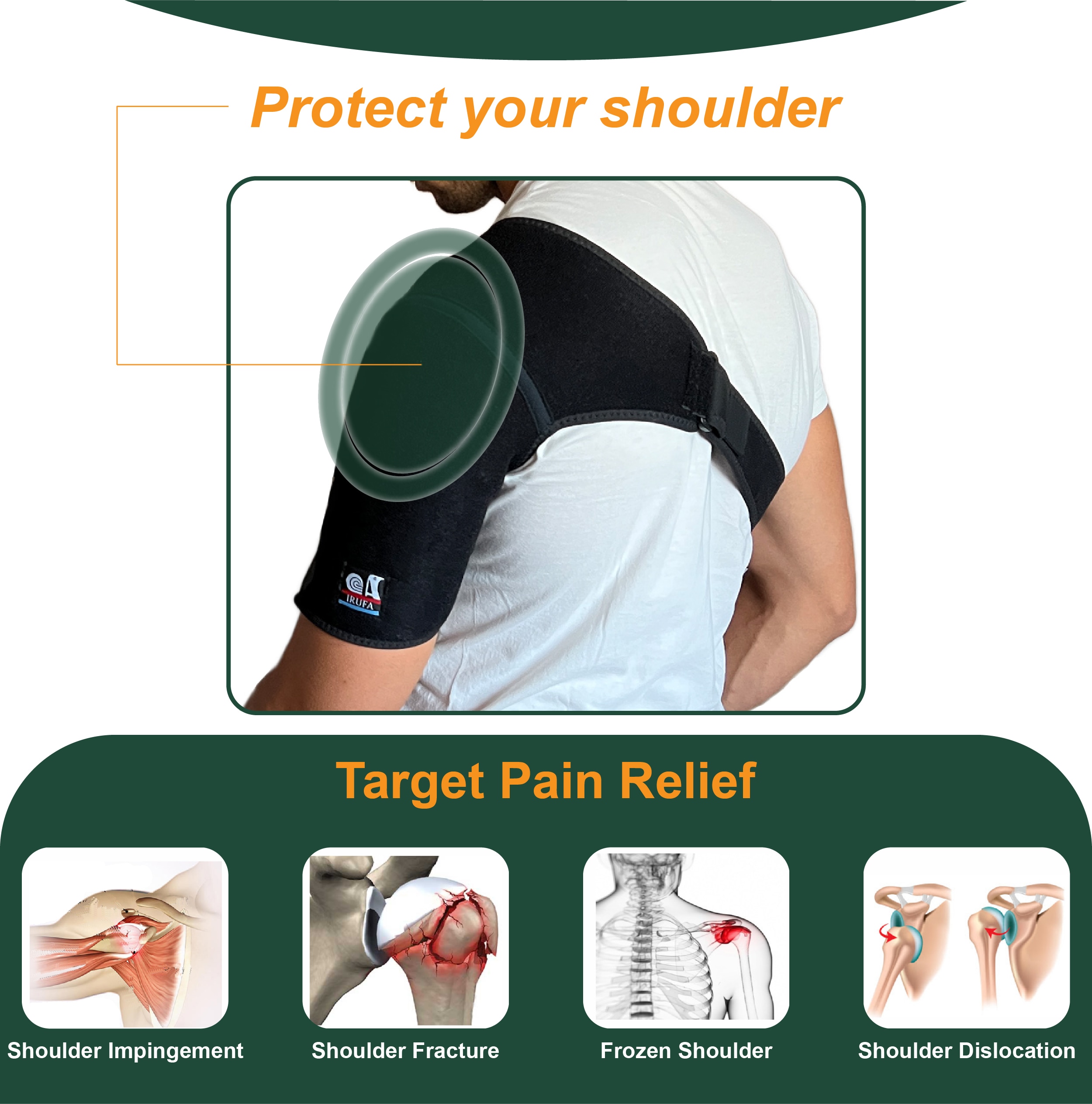 • USA FDA Listed product: Helps to reduce the symptoms of AC joint, rotator cuff injuries, weak or arthritic shoulders during occupational and sporting activities.